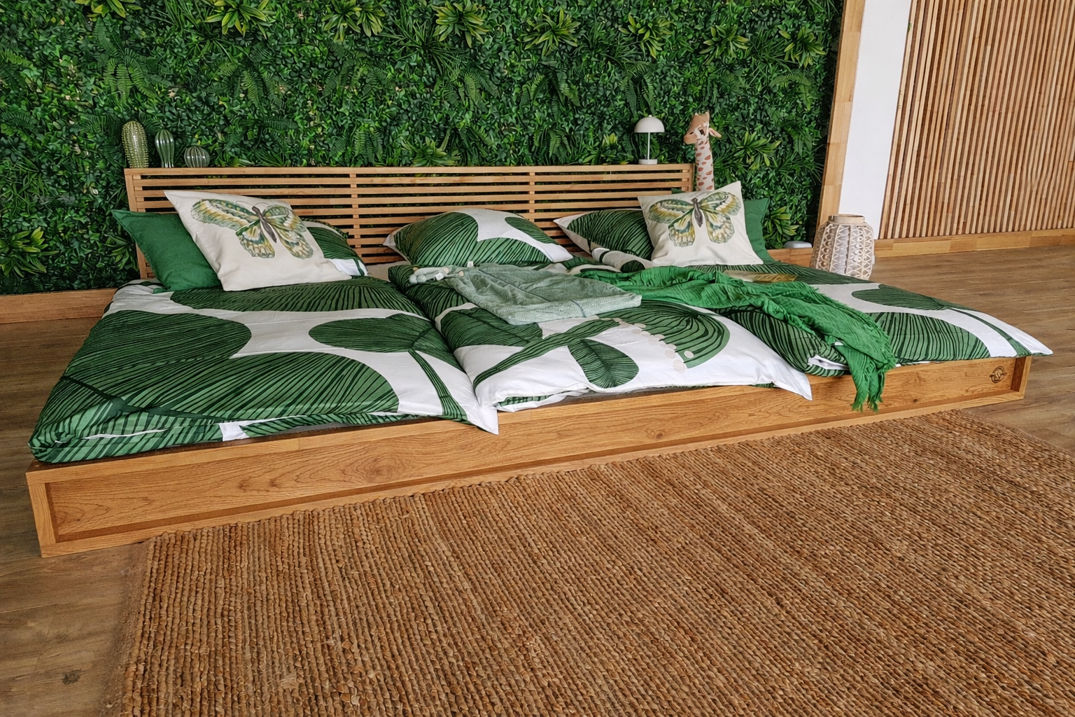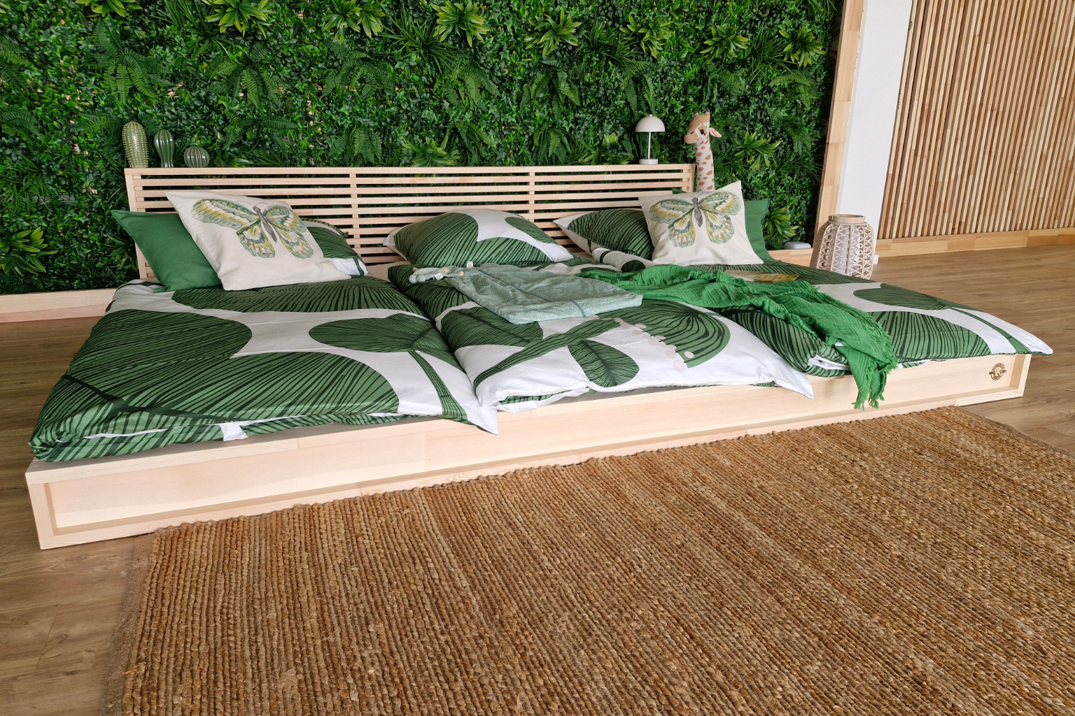 Eigenentwickelte, designgeschützte Massivholzbetten.