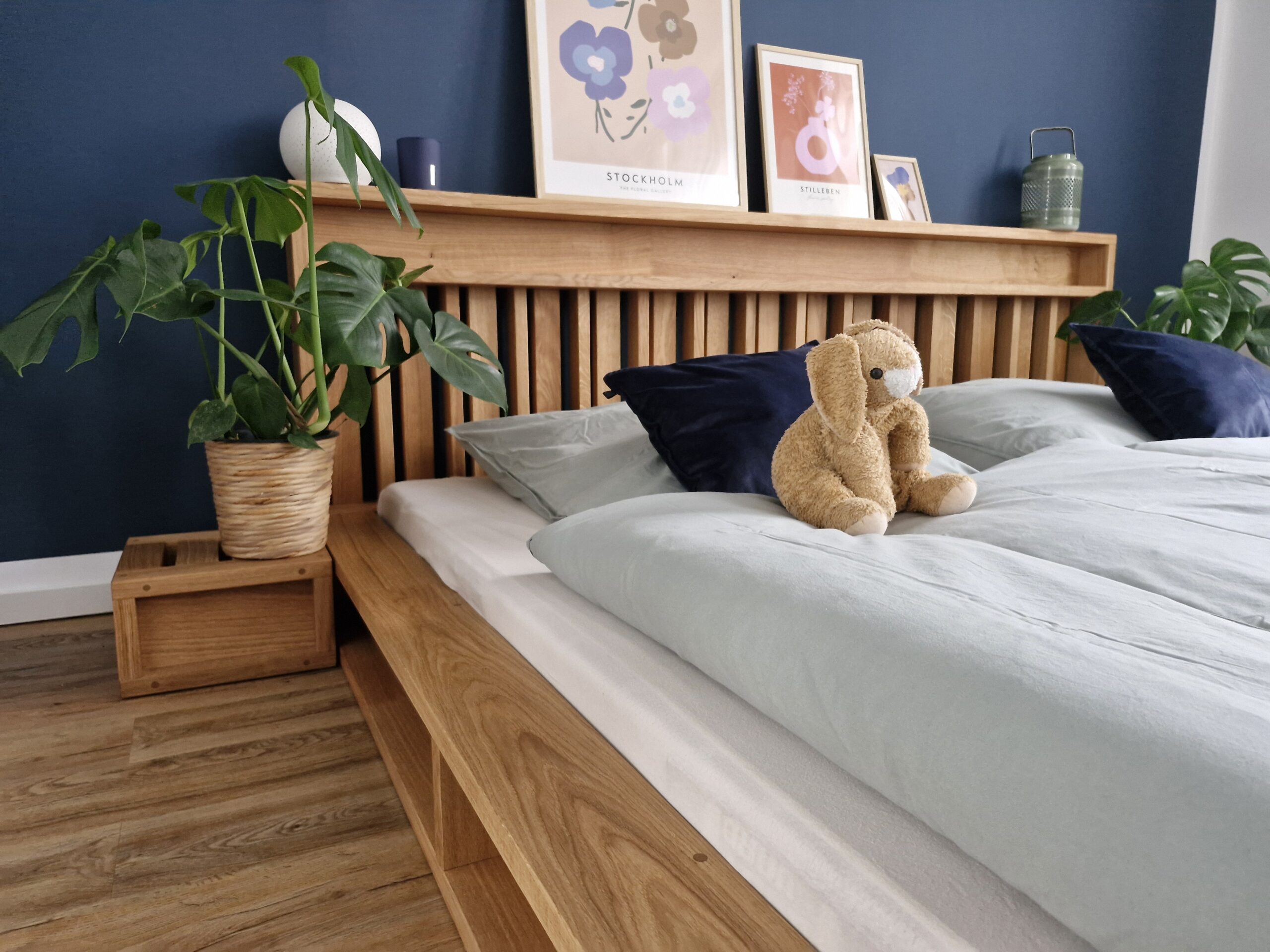 Stilvolles Kopfteil & massiver Rahmen – Design mit Funktion im Familien-Bett 300×200