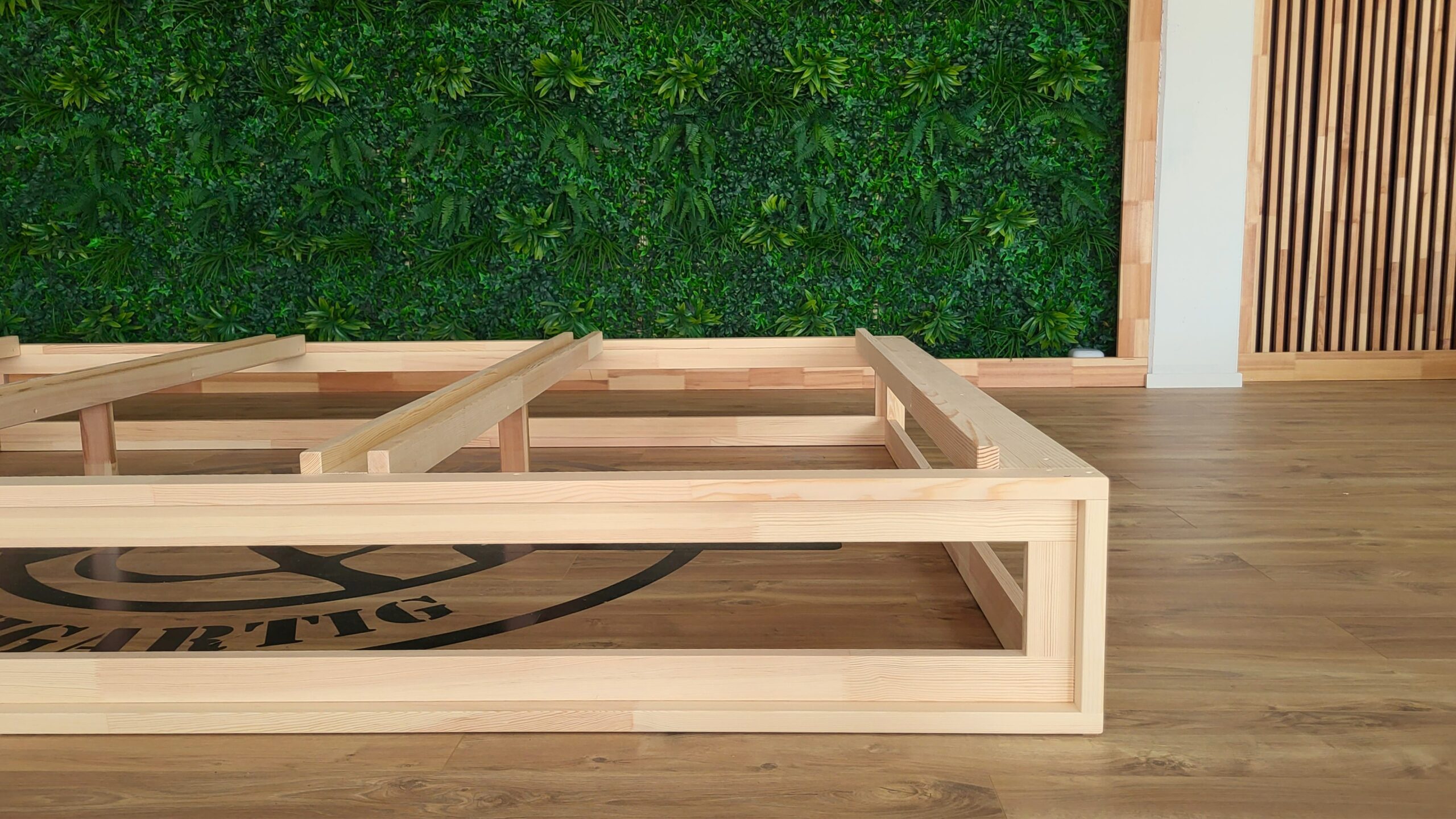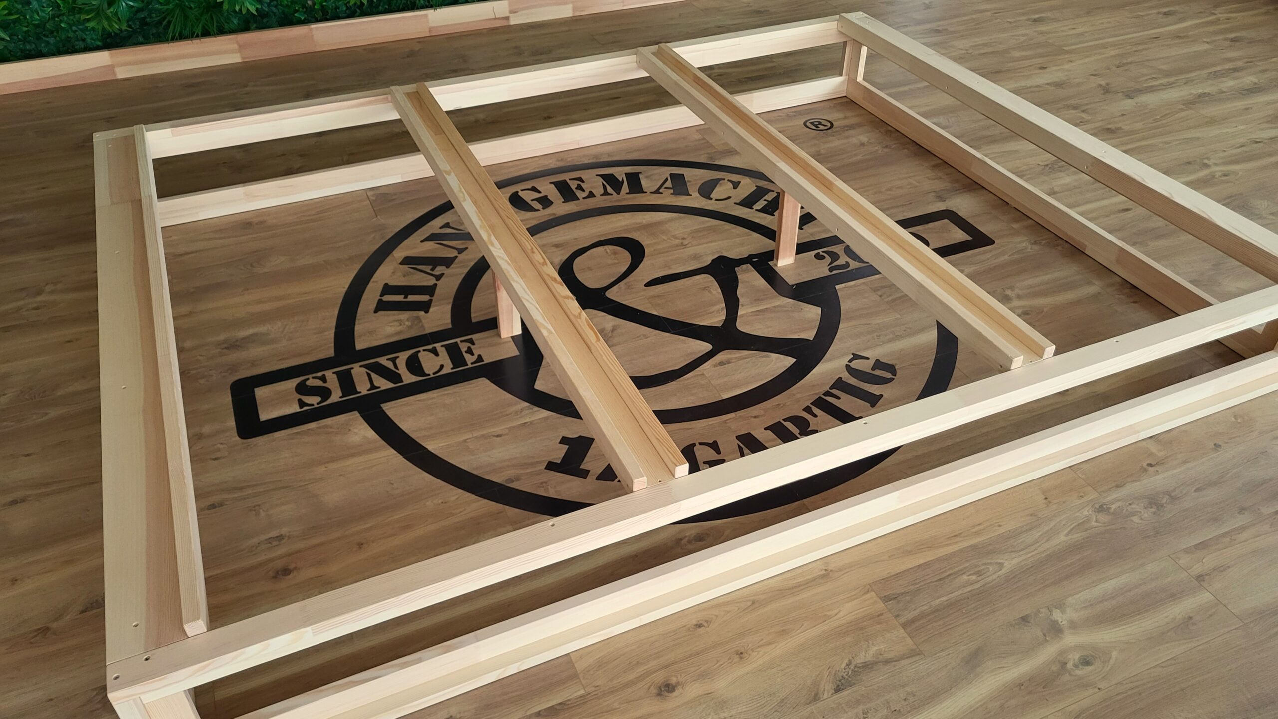 Das Untergestell wird in massiver Bauweise gefertigt und besteht – wie unsere Familienbetten – aus hochwertigem Massivholz. Die gesamte Konstruktion umfasst nur vier Teile sowie stabile Stützleisten für die Lattenrostauflagen. Dadurch bleibt die Betterweiterung Familienbett besonders robust, langlebig und zuverlässig. Dank der smarten Bauweise muss das Familienbett lediglich auf dem Untergestell aufgebaut werden – eine feste Verbindung untereinander ist nicht erforderlich.